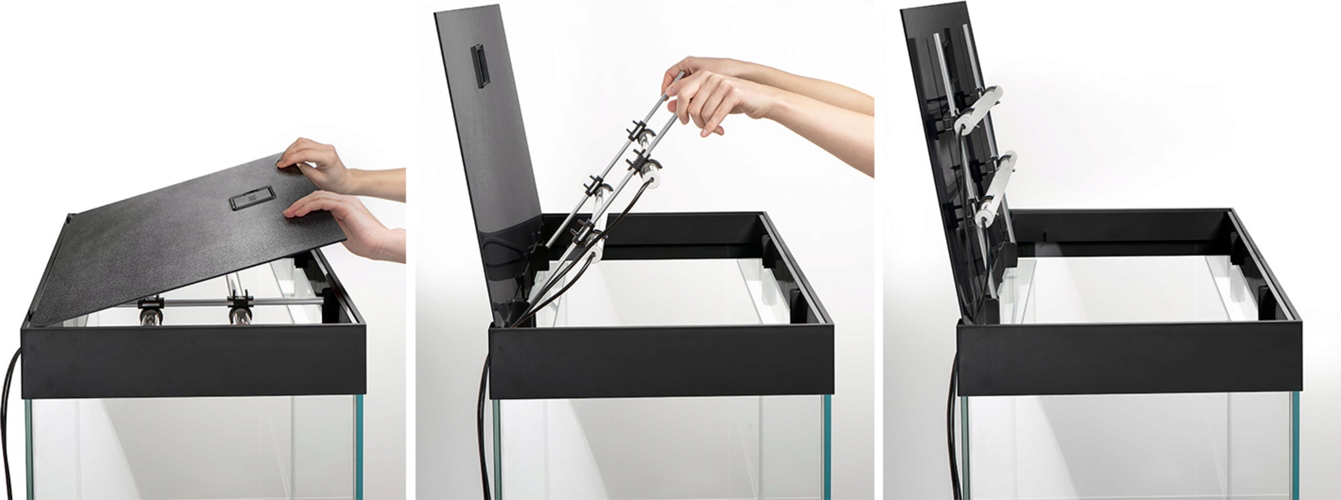 Системата Smart Open в капака осигурява лесна поддръжка. Капакът, както и осветлението, могат да се сгъват изцяло нагоре и тъй като аквариумът няма напречни закрепвания,така се осигурява удобен достъп до вътрешността на аквариума. Друг плюс е, че капакът е над аквариума, когато е отворен, така че кондензацията се стича обратно в аквариума, а не зад него.