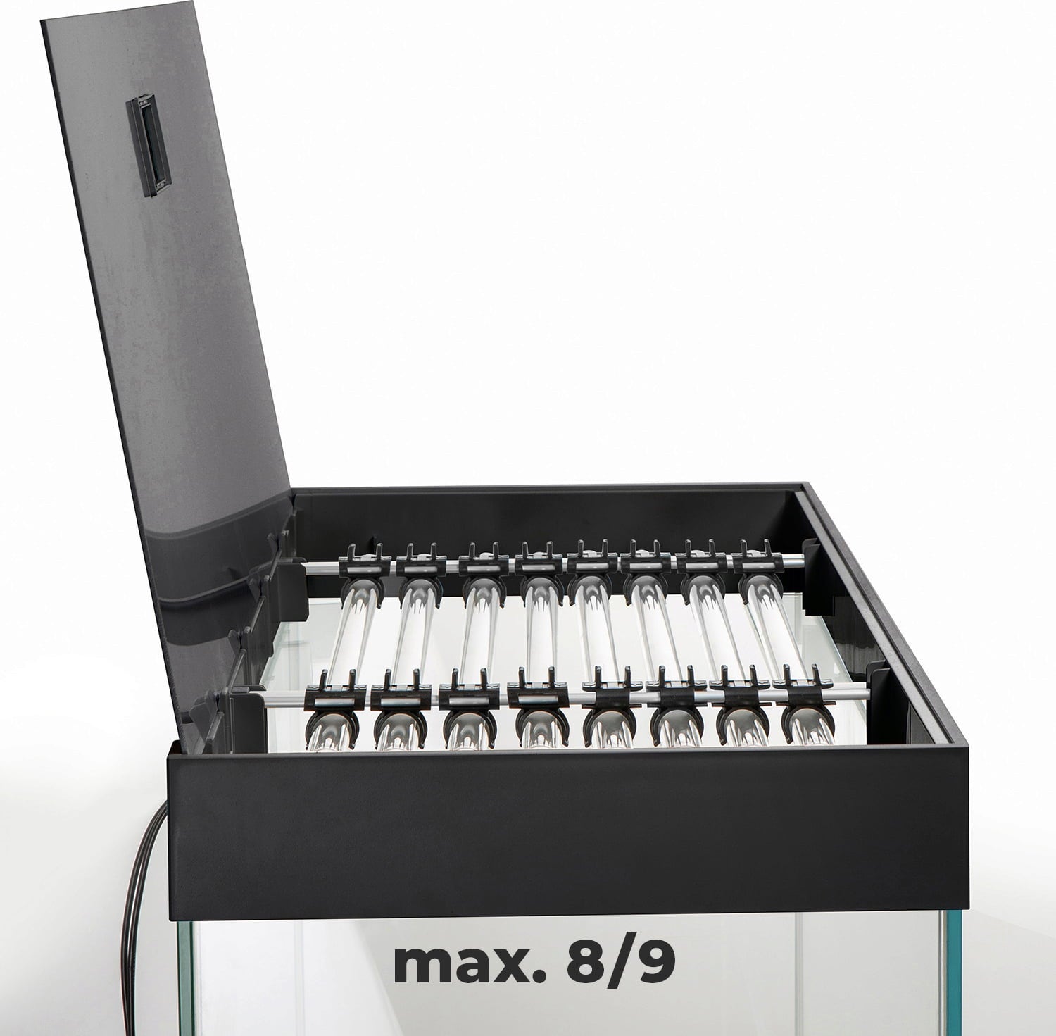 Аквариумът OPTI SET 200 2.0 е осветен с две 14-ватови LED тръби Leddy Day & Night. Те са не само много икономични, но и имат три режима на осветяване: Ден / Изгрев / Нощ. Настройката е много лесна благодарение на превключвателя за осветлението. Друг плюс: позицията на осветлението е безкрайно променлива благодарение на направляващата релса и може да се разшири до максимум 8 Leddy Tubes (те не са включени в обхвата на доставката).
