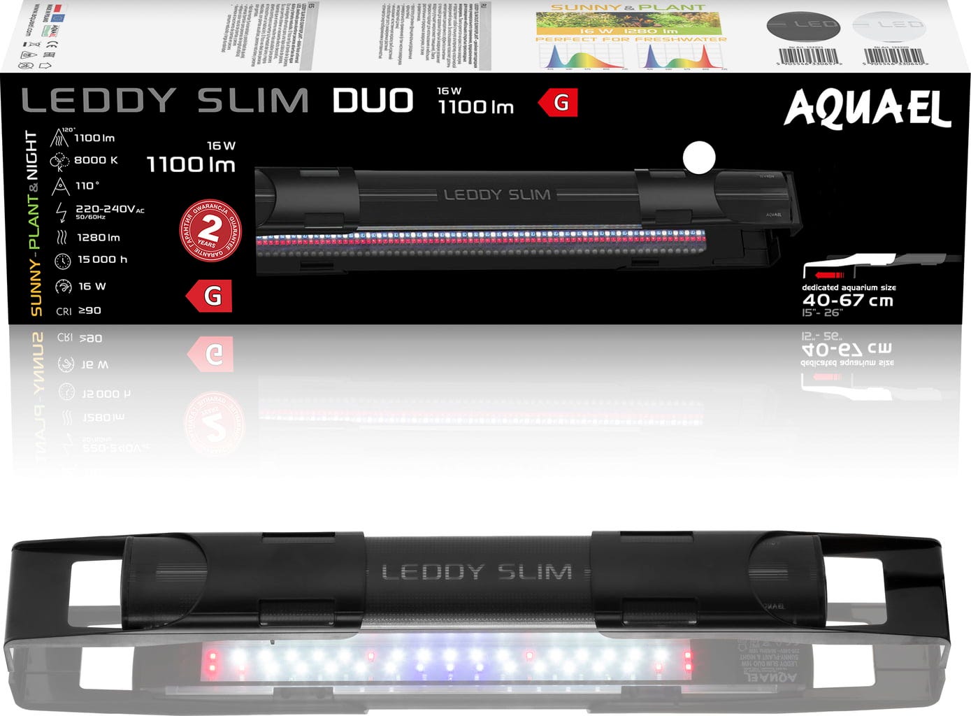 Модерният дизайн на Leddy Slim Duo е елегантно и практично допълнение към вашия аквариум и подчертава разнообразието на аквариума ви с оптималното си осветление!