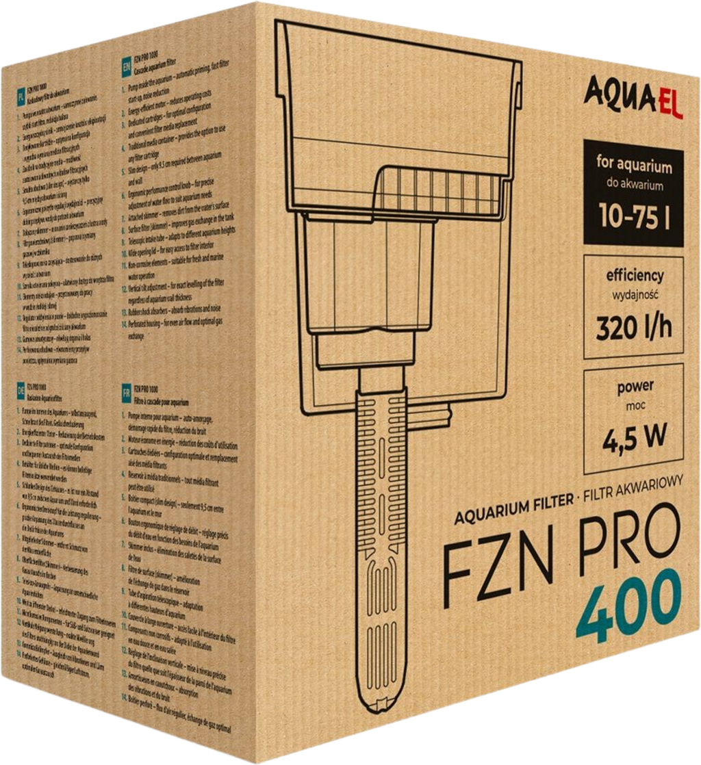 Външният филтър FZN PRO от Aquael е каскаден филтър, подходящ за употреба в соленоводни и сладководни аквариуми. Той се отличава с впечатляваща гъвкавост и функционалност.