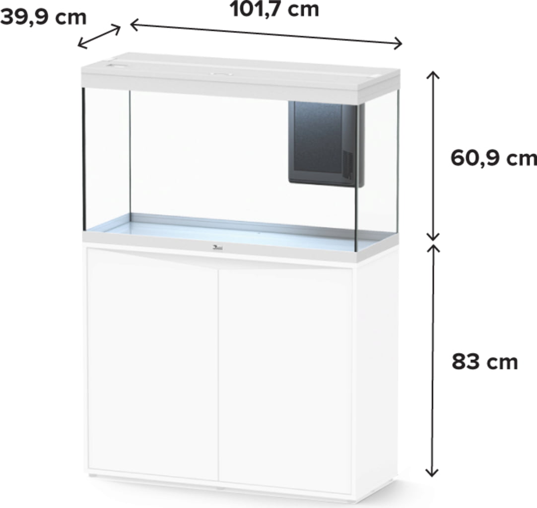 Този комплект ще ви спечели с висококачествените си алуминиеви профили и подходящия шкаф. Комплектът включва LED осветление и вътрешна филтърна система Biobox с нагревател.