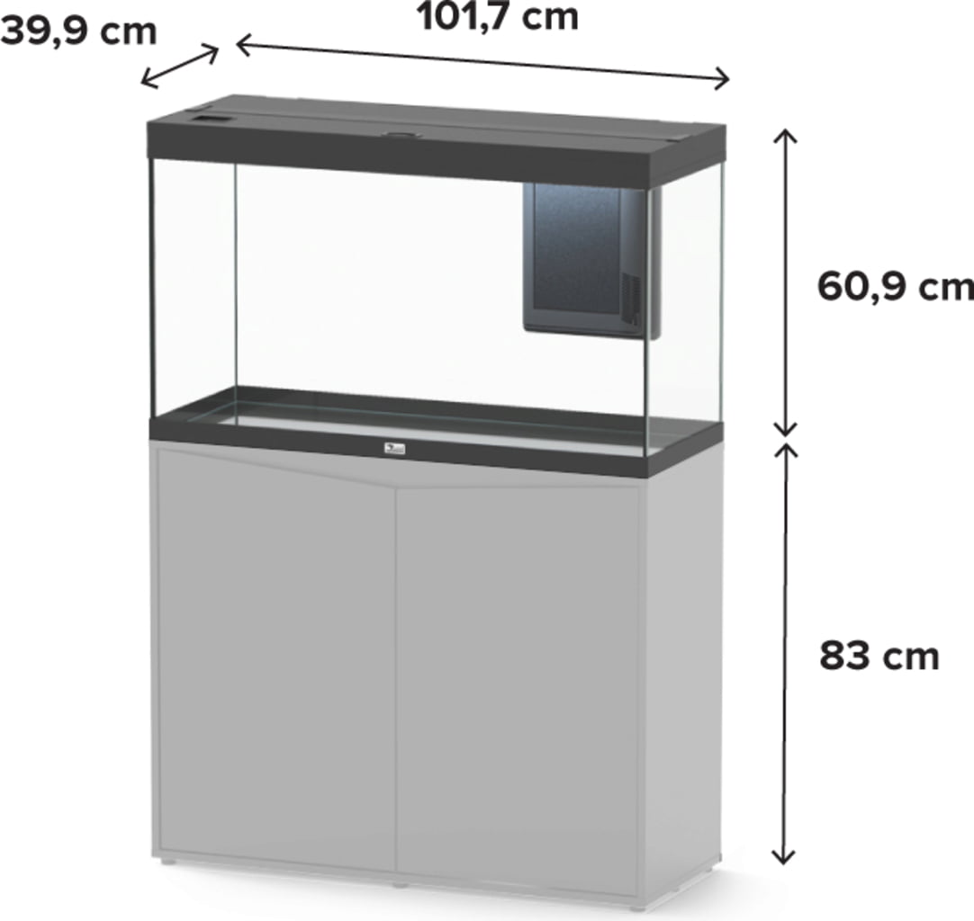 Този комплект ще ви спечели с висококачествените си алуминиеви профили и подходящия шкаф. Комплектът включва LED осветление и вътрешна филтърна система Biobox с нагревател.