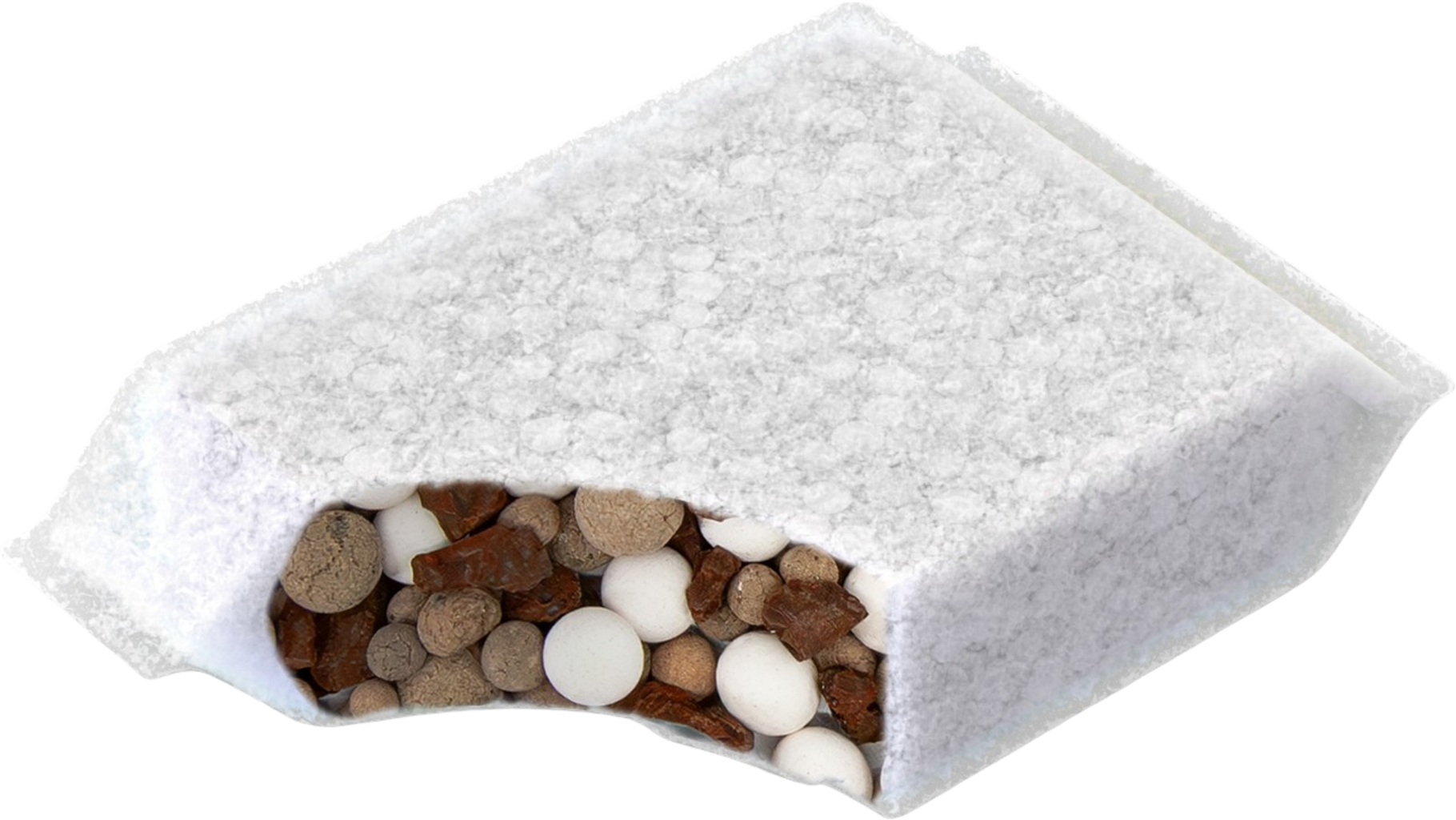 Тя намалява количеството на органичните вещества и абсорбира и свързва фосфатите, нитратите, нитритите и амоняка, като осигурява отлични резултати само след 2 седмици. Капакът на филтърната среда може да се компостира, а самата използвана филтърна среда може да се използва повторно като растителен субстрат.