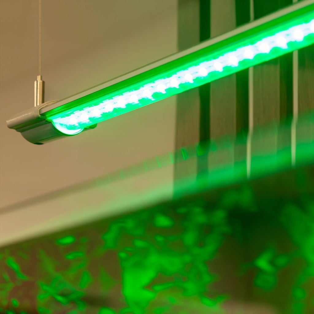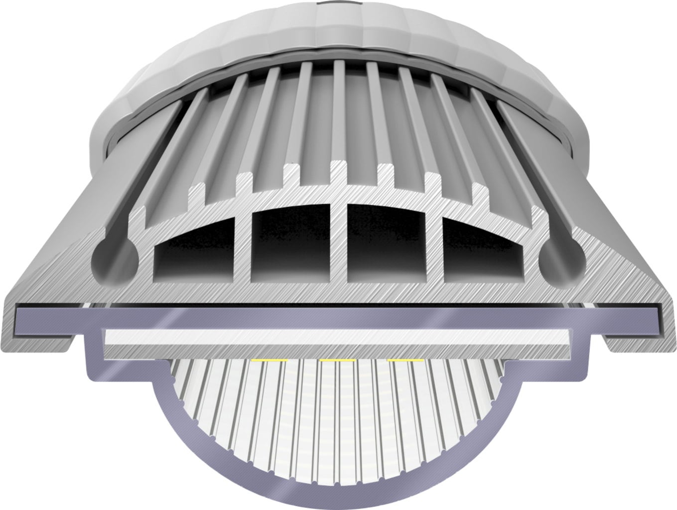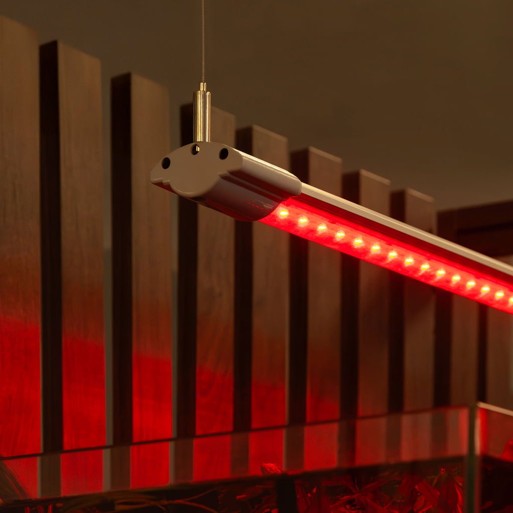 Усъвършенстваната алуминиева конструкция с вградени охлаждащи ребра осигурява оптимално разсейване на топлината и е специално проектирана за взискателните условия в аквариумите. Прозрачното акрилно стъкло увеличава максимално пропускането на светлината и по този начин подобрява ефективността на осветлението. Благодарение на регулируемите метални скоби в двата края LED осветлението може да бъде гъвкаво адаптирано към всеки аквариум.