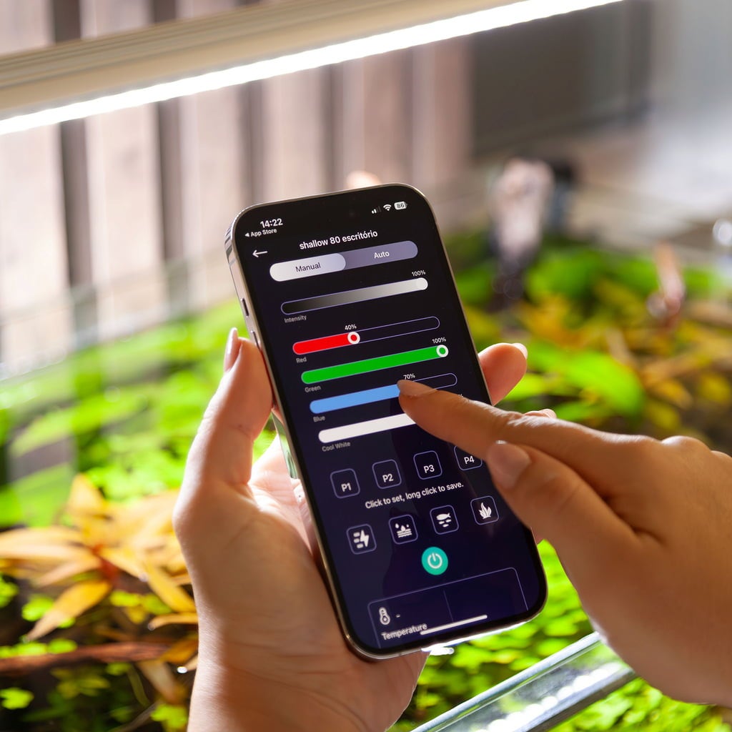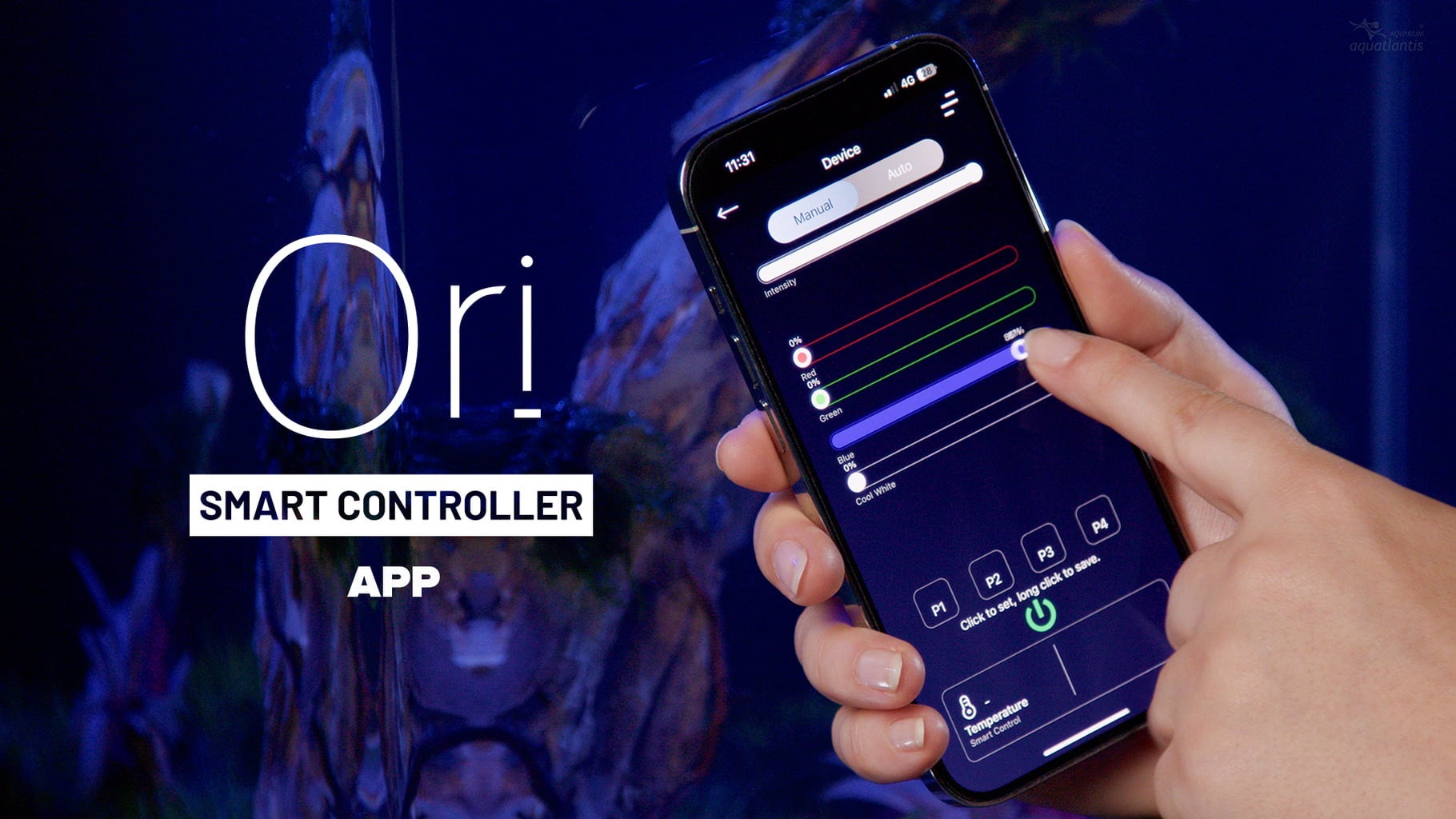 В комплекта е включен интелигентният контролер ORI за максимален контрол на светлината в аквариума! В комбинация с интуитивното приложение ORI можете лесно да регулирате цветовете на светлината и да създавате индивидуални седмични графици!