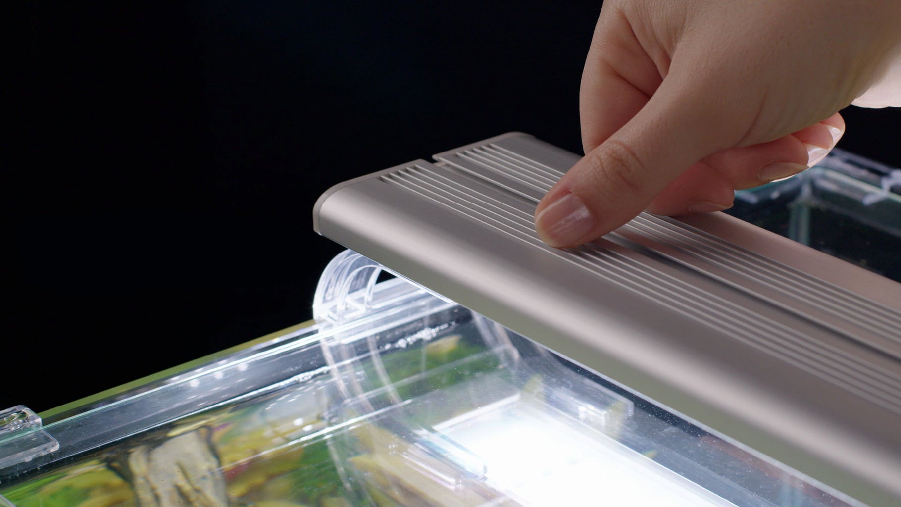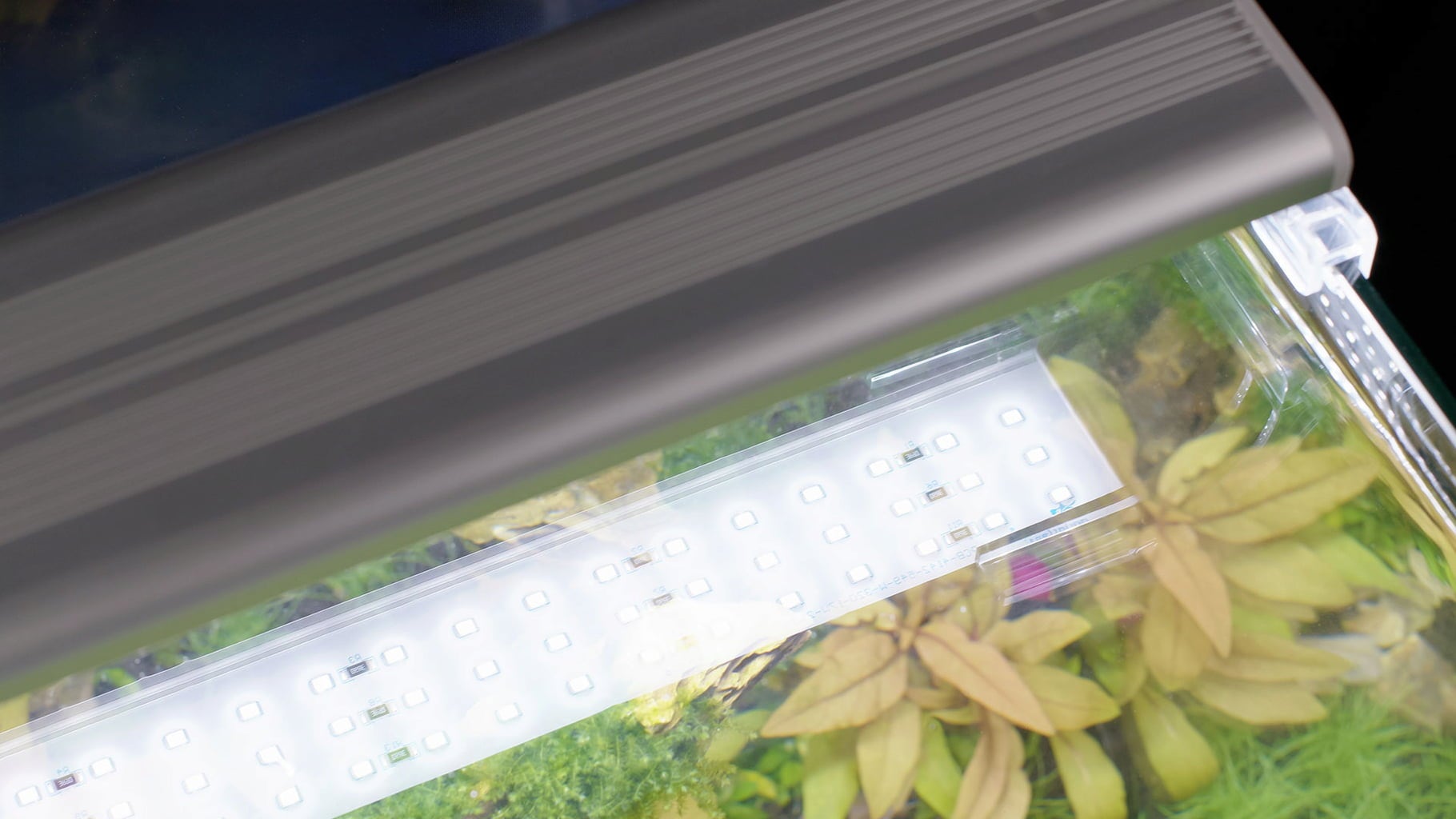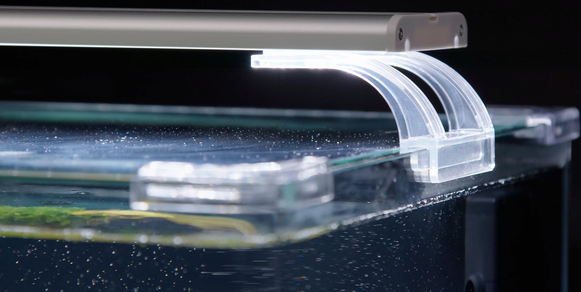 Комплектът включва и осветителното тяло с тънък дизайн Univ LED Plus, което също има регулируеми държачи от прозрачен акрил и следователно е идеално допълнение към аквариума Kubus Curve. Светлината е балансирана, идеална за фотосинтеза и затова е идеална за аквариуми с растения.