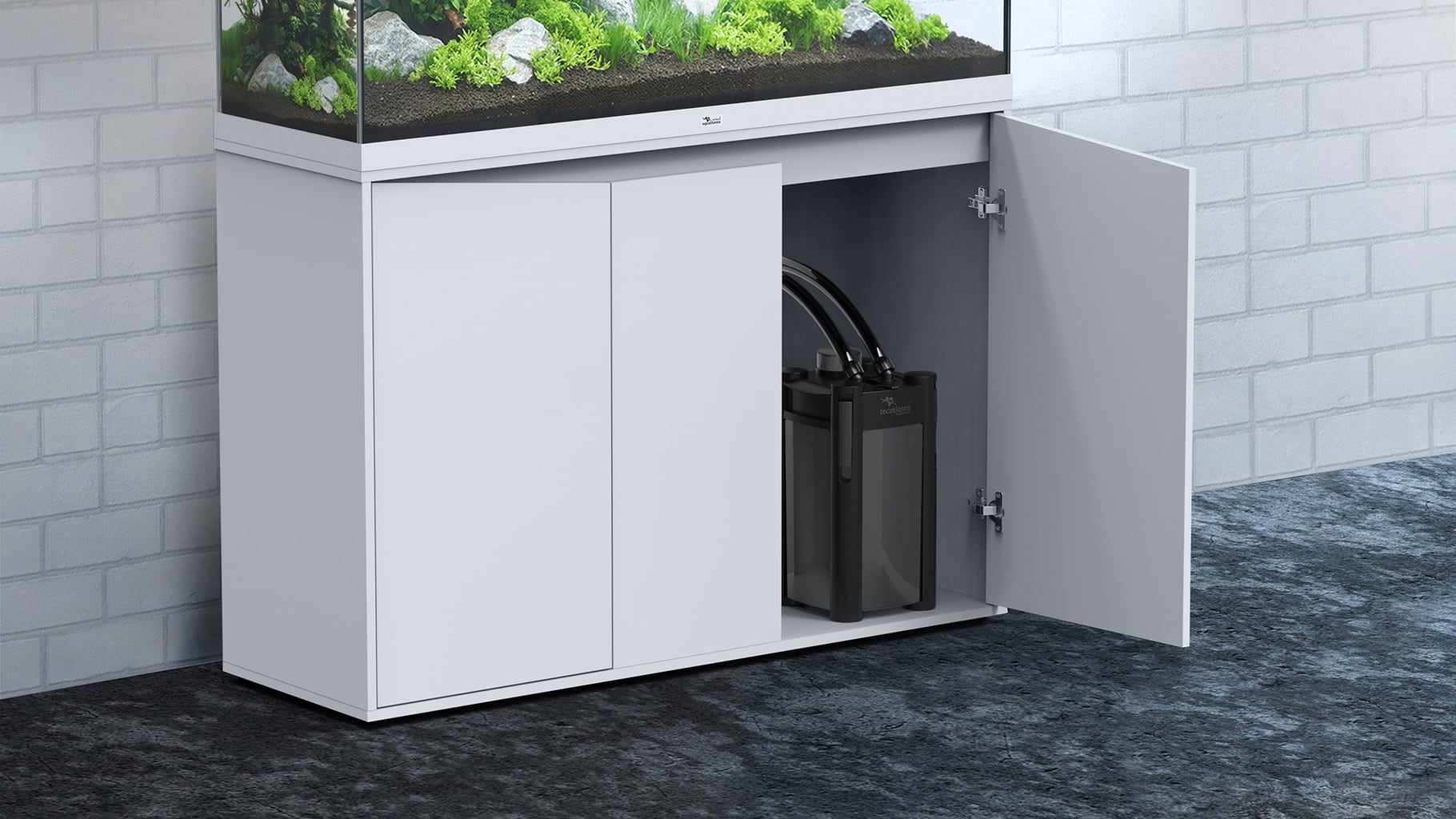 Този комплект ще ви спечели с висококачествените си алуминиеви профили и подходящия шкаф. Комплектът включва LED осветление и вътрешна филтърна система Biobox с нагревател.