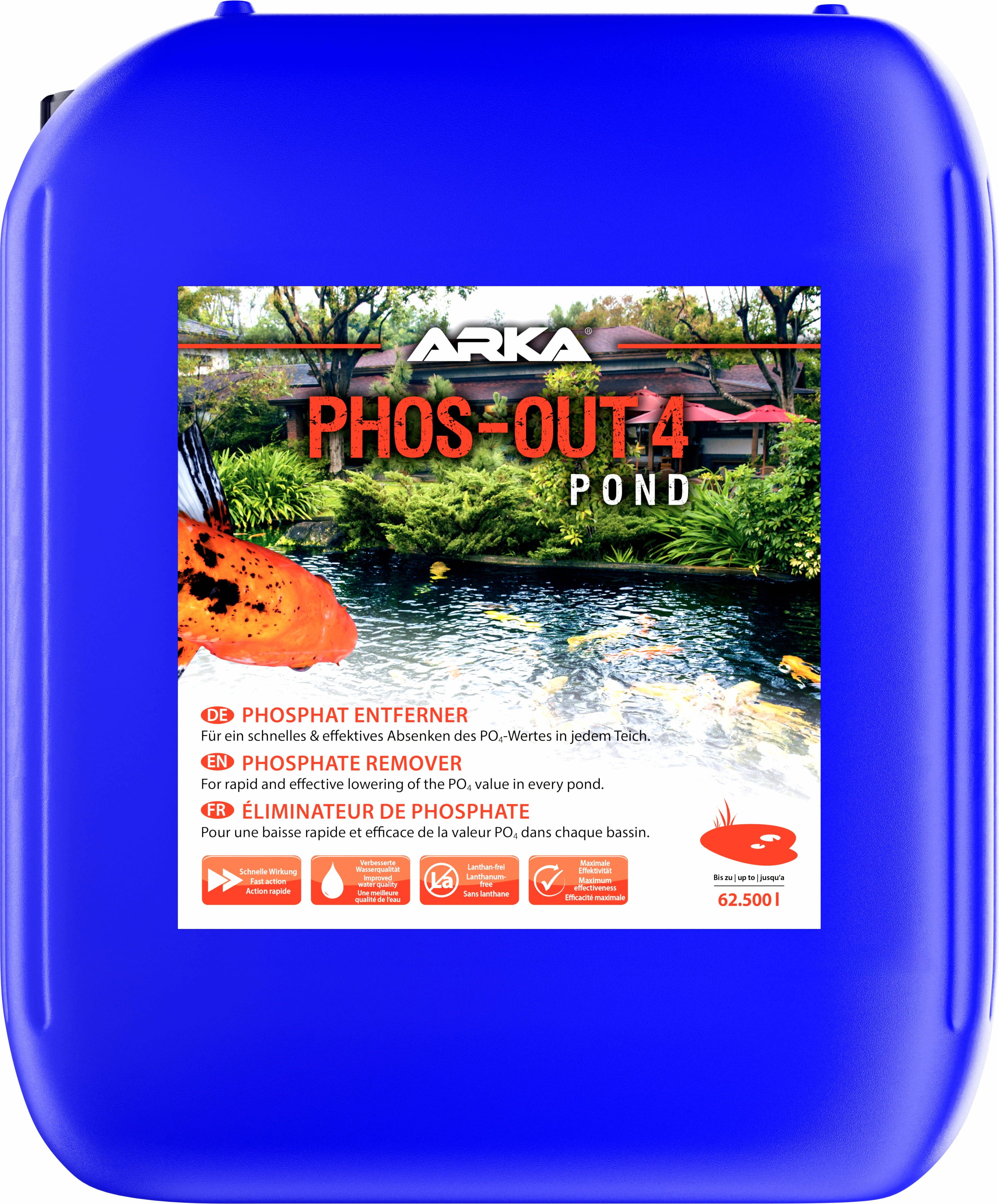 Phos-Out 4 Pond на ARKA е филтърна среда или абсорбер за бързо и ефективно намаляване на нивата на PO4 във водата в езерото. Той отстранява фосфатите бързо и надеждно, като устойчиво подобрява качеството на водата и живота на всички обитатели на езерото. Продуктът на полимерна основа нежно отстранява всички органични и неорганични фосфати, без да засяга биологията на езерото. Контролираното намаляване на стойността на PO4 е безвредно за животните.