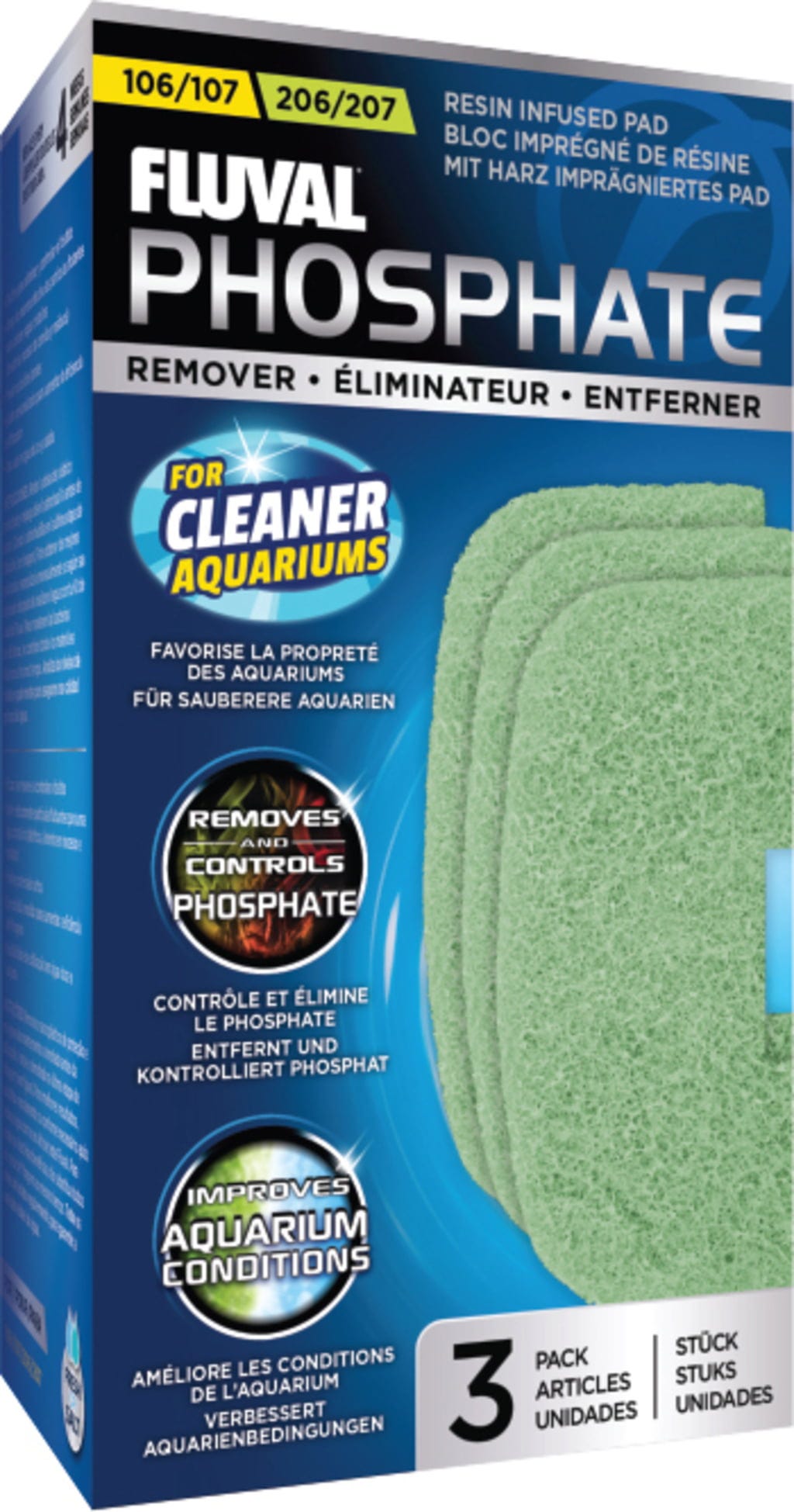 Специално проектирани за високоефективния филтър Fluval 07, импрегнираните със смола подложки за отстраняване на фосфати служат едновременно като ефективна механична и химическа среда.
