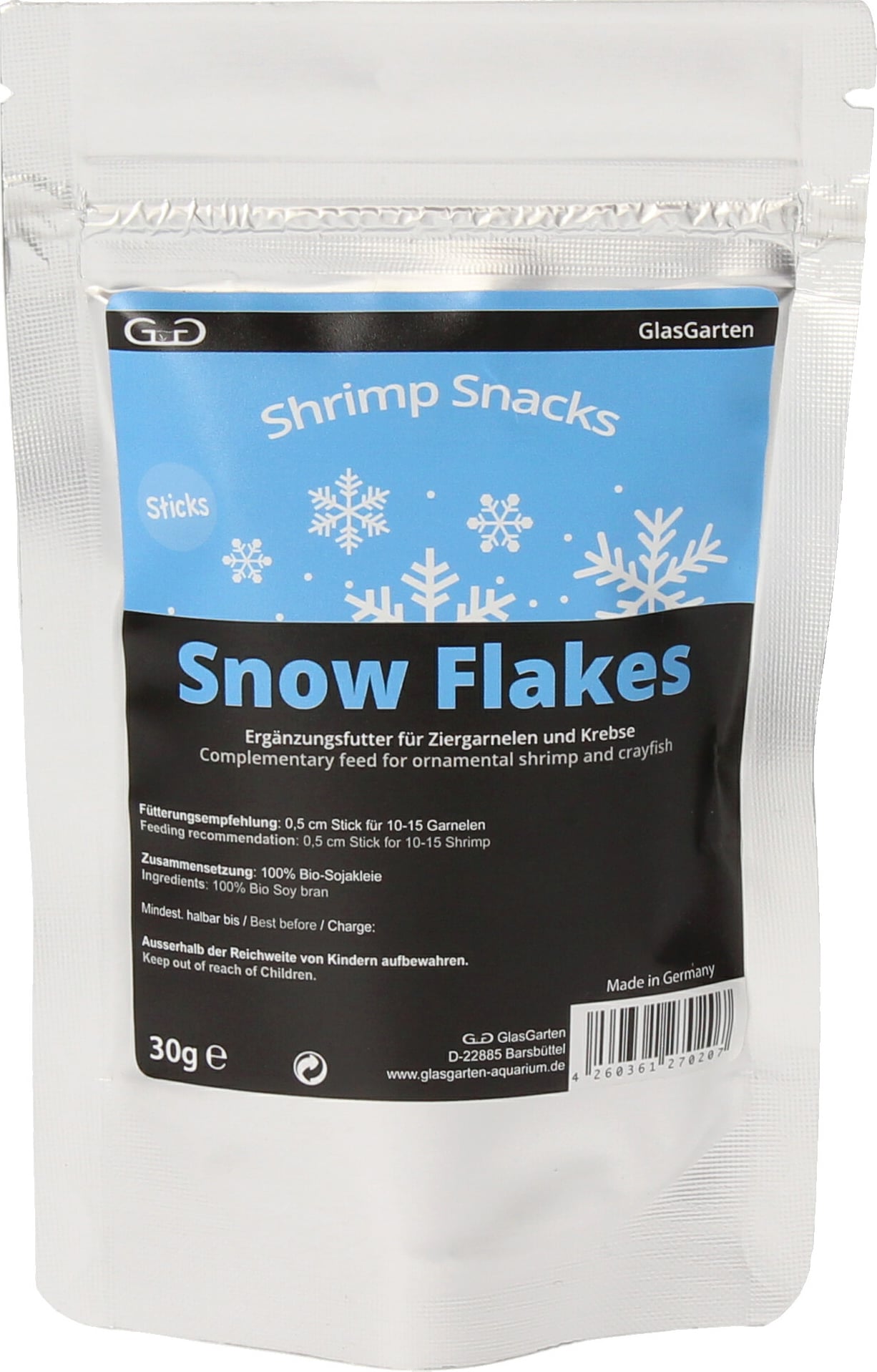 GlasGarten Shrimp Snacks е идеална допълнителна храна за скариди джуджета, която се препоръчва и за скариди, охлюви и раци в аквариума. Пръчиците бързо се разпадат във водата, като се разпределят върху сравнително голяма повърхност, така че да има достатъчно храна за всички обитатели на аквариума.