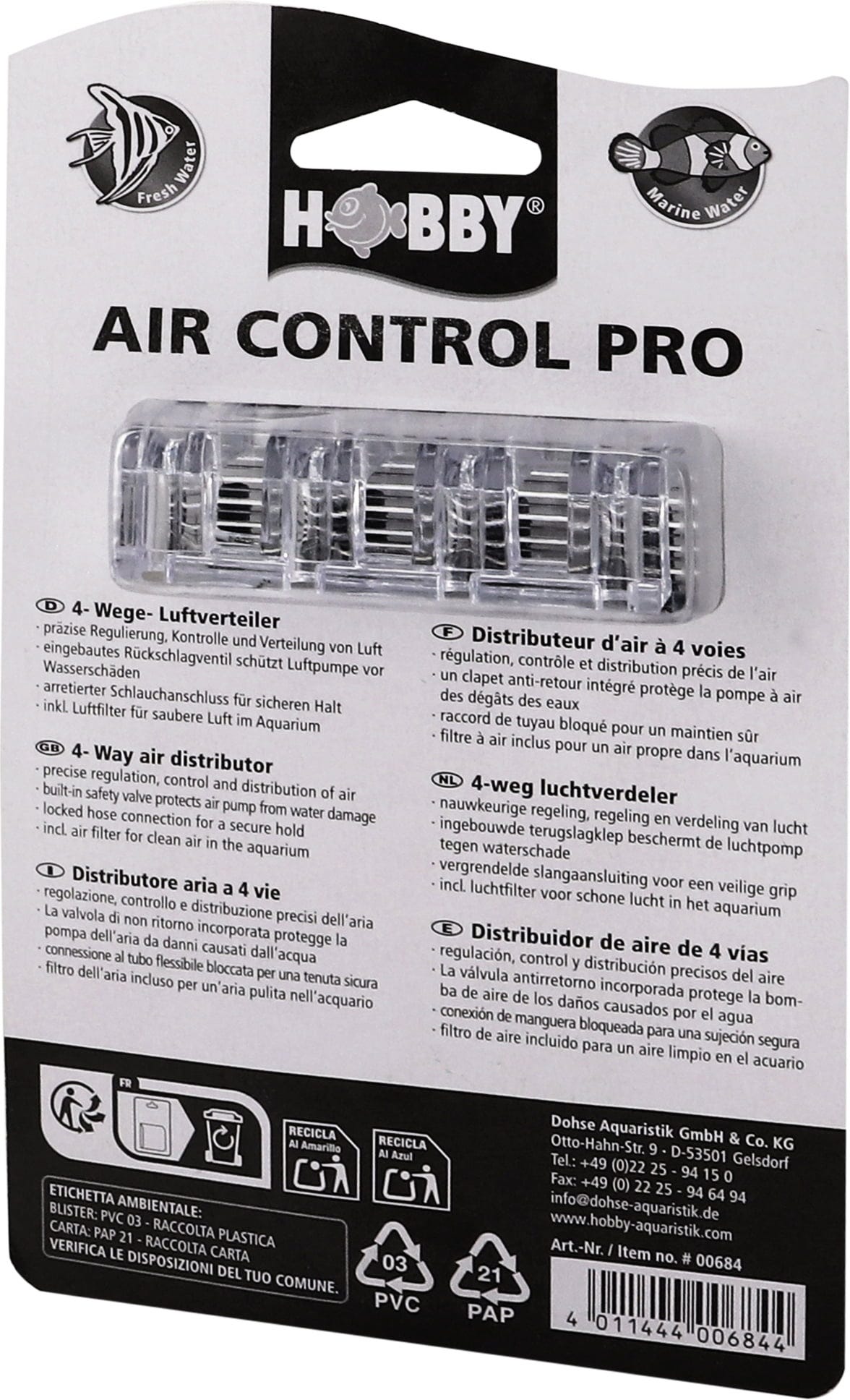 За да осигурите оптимална вентилация на аквариума, Hobby's Air Control Pro 4-Way е идеалният избор. Този висококачествен разпределител на въздуха позволява прецизен контрол на потока и осигурява равномерно разпределение на въздуха в целия аквариум.