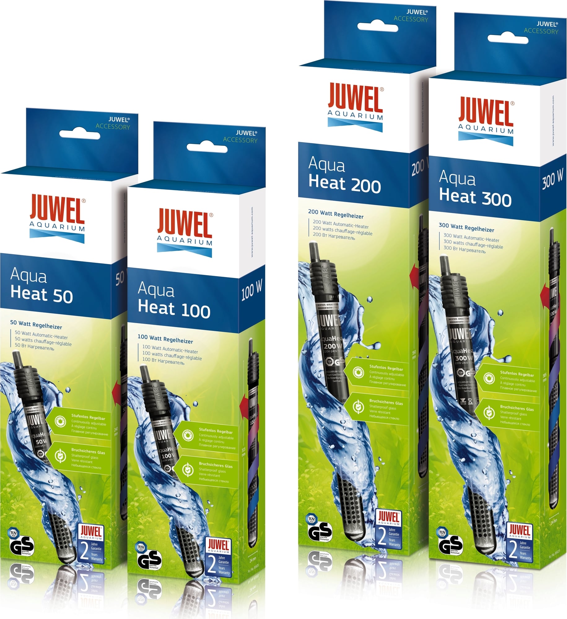 Нагревателят на Juwel надеждно и безопасно осигурява правилната температура във вашия аквариум. В зависимост от температурата в помещението и размера на аквариума, с нагревателя можете да постигнете температура на водата от около + 28С. Благодарение на използването на висококачествени контакти и устойчиво на топлина и удар боросиликатно стъкло (безопасен газ), контролните нагреватели на Juwel отговарят на най-високите изисквания по отношение на функционалността и безопасността.