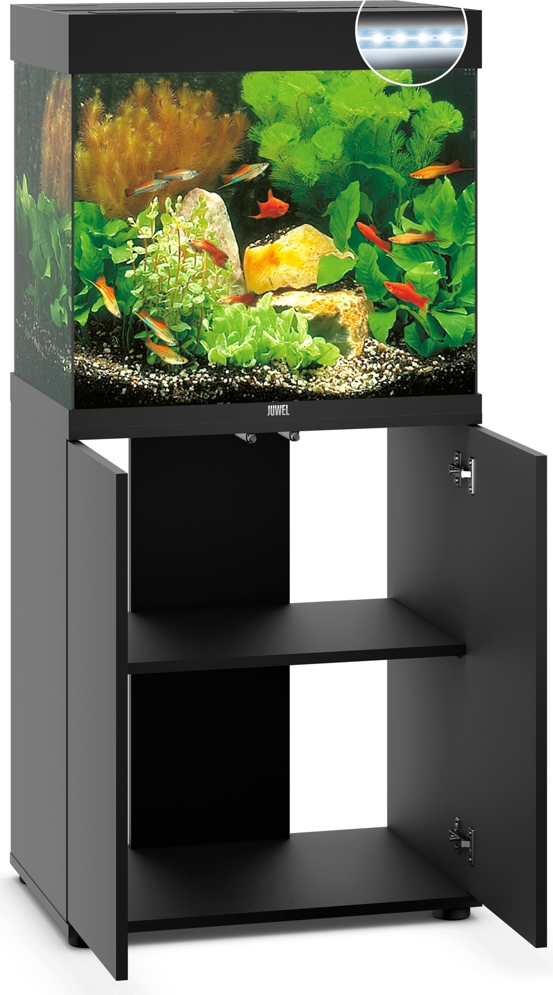 Заедно с шкафа за аквариум, вашият аквариум е невероятно стабилен. Сглобяването е изключително лесно и щедрото пространство вътре, което може да се използва например за съхранение на аксесоари за аквариум, също го прави супер практичен.