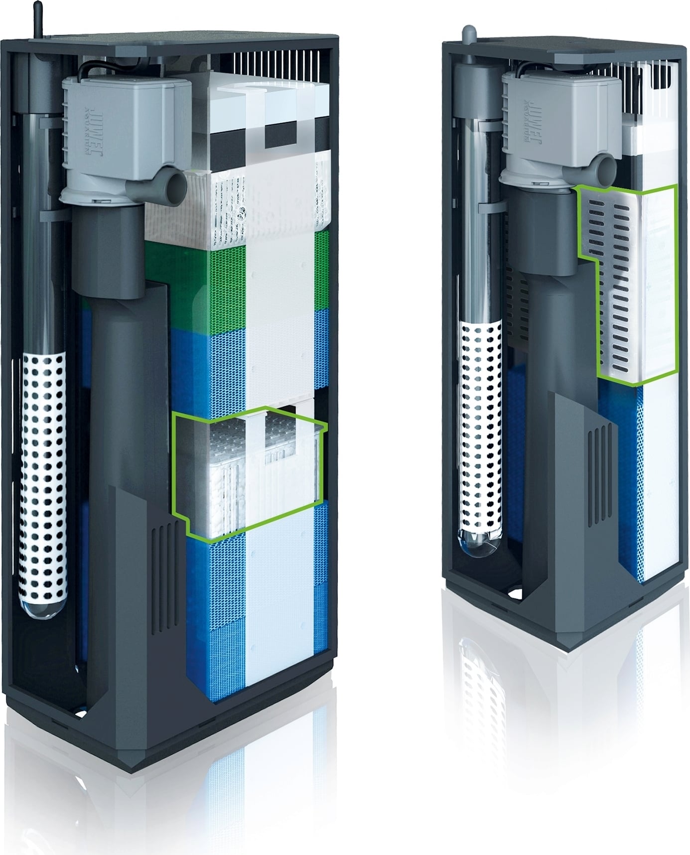 Филтрите Juwel Bioflow са оборудвани с високоефективна и изключително тиха циркулационна помпа Eccoflow, чиято мощност е научно съобразена с размера на филтърната система. Освен това Bioflow филтрите са подготвени за интегриране на нагреватели Juwel, които по този начин са оптимално включени във водния кръг и осигуряват равномерно разпределение на топлината във всички зони на вашия аквариум. Филтърната система Bioflow не използва маркучни връзки, които намаляват ефективността и често са причина за течове. По този начин Bioflow представлява най-сигурният начин за филтриране на водата в аквариума.