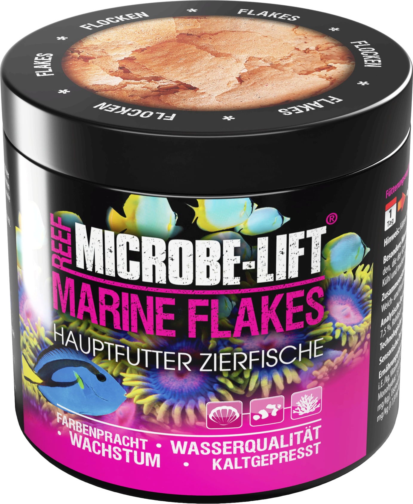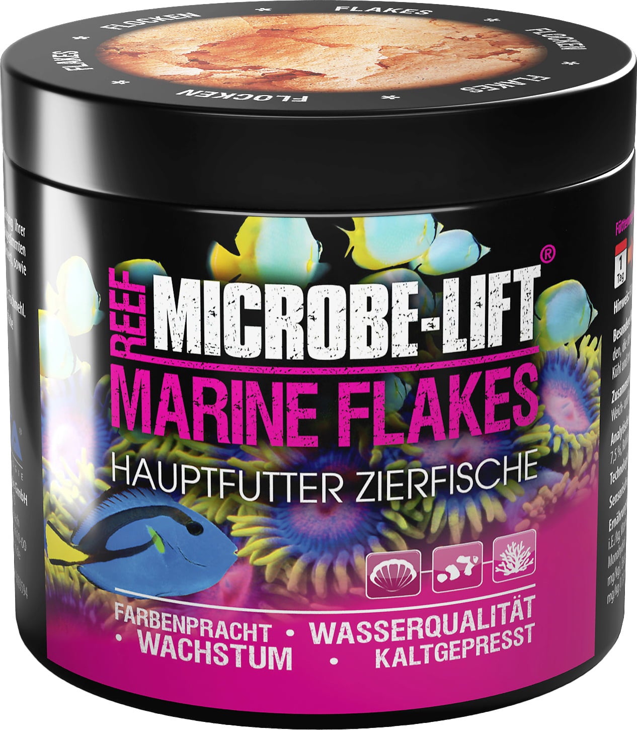 Marine Flakes от Microblift са произведени по метода на студено пресоване. Тази храна на люспи осигурява много добро хранене за вашите соленоводни риби с високо ниво на приемане. Съставките в храната на люспи придават на декоративните рибки красиви цветове. Специално координираният състав засилва пъргавината и устойчивостта. Храната на люспи не съдържа спирулина.