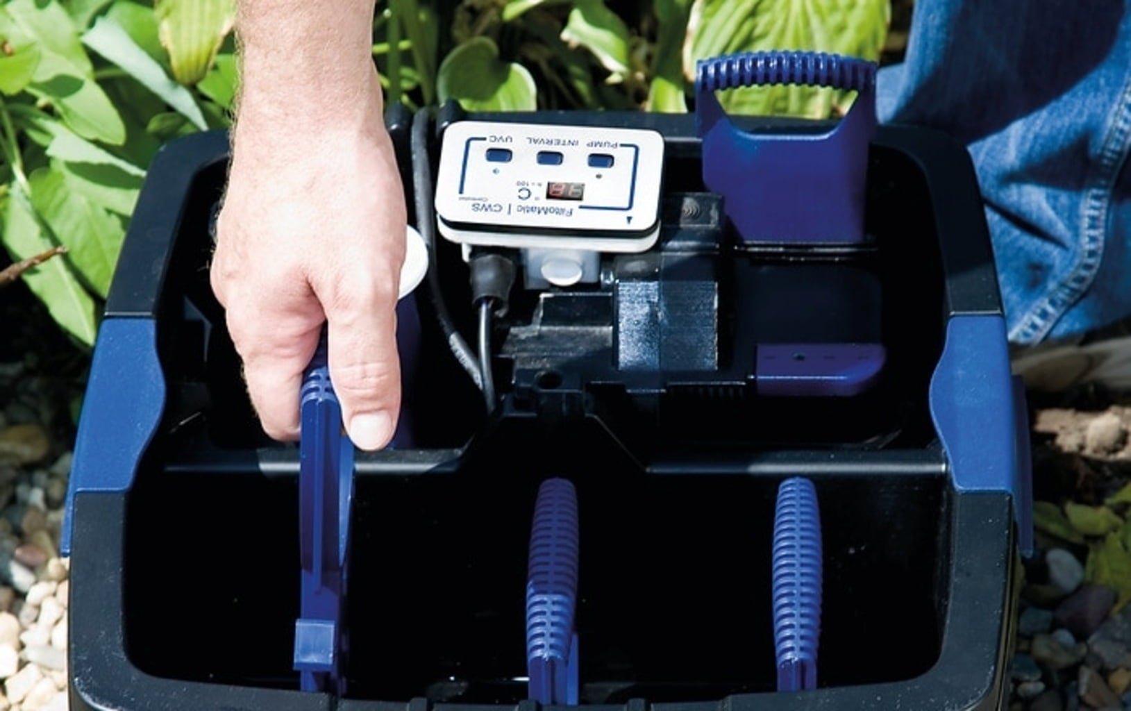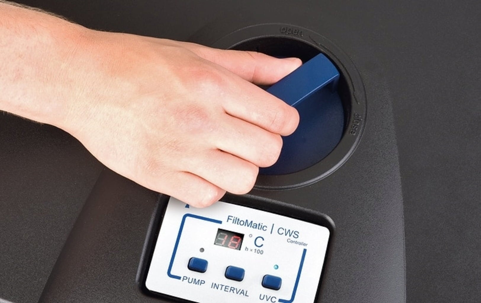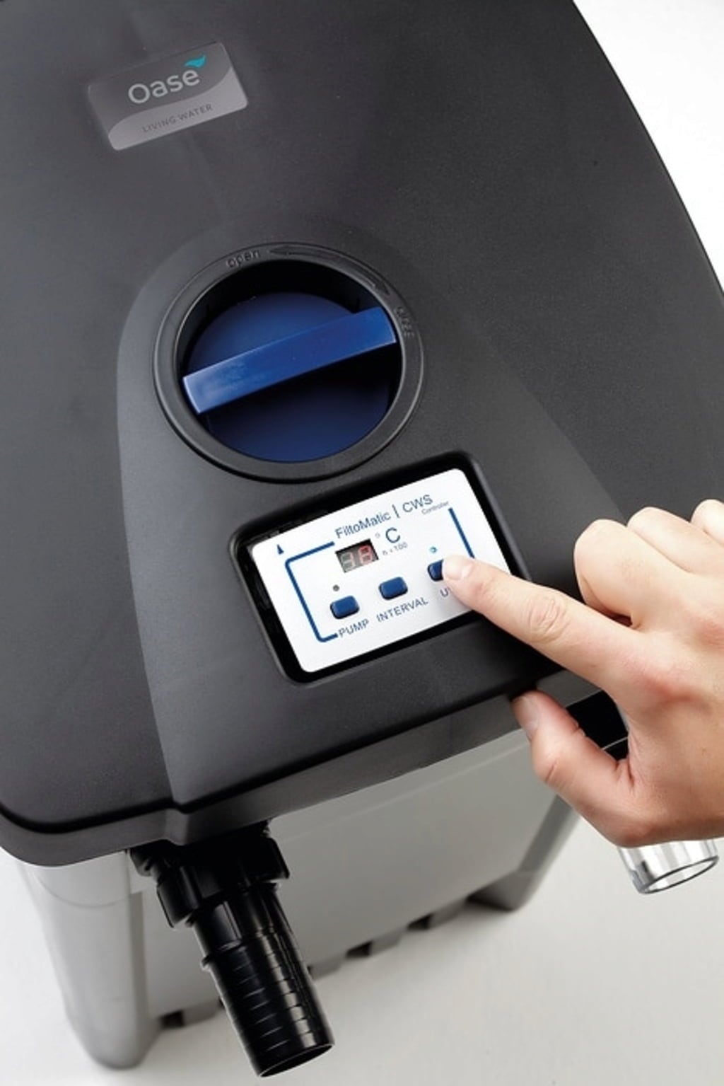 FiltoMatic CWS също така намалява усилията за почистване, тъй като утайката се отстранява автоматично, а филтърните гъби също са лесни за почистване. Практичният брояч на работните часове също така ще ви напомня своевременно да смените крушките на UVC уреда. Функциите на UVC и помпата могат да се управляват ръчно по всяко време. Друг плюс: филтърът може да бъде заровен до 70% от дълбочината му до ръба на езерото. Това го прави почти невидим и не нарушава хармоничния облик на вашата градина.