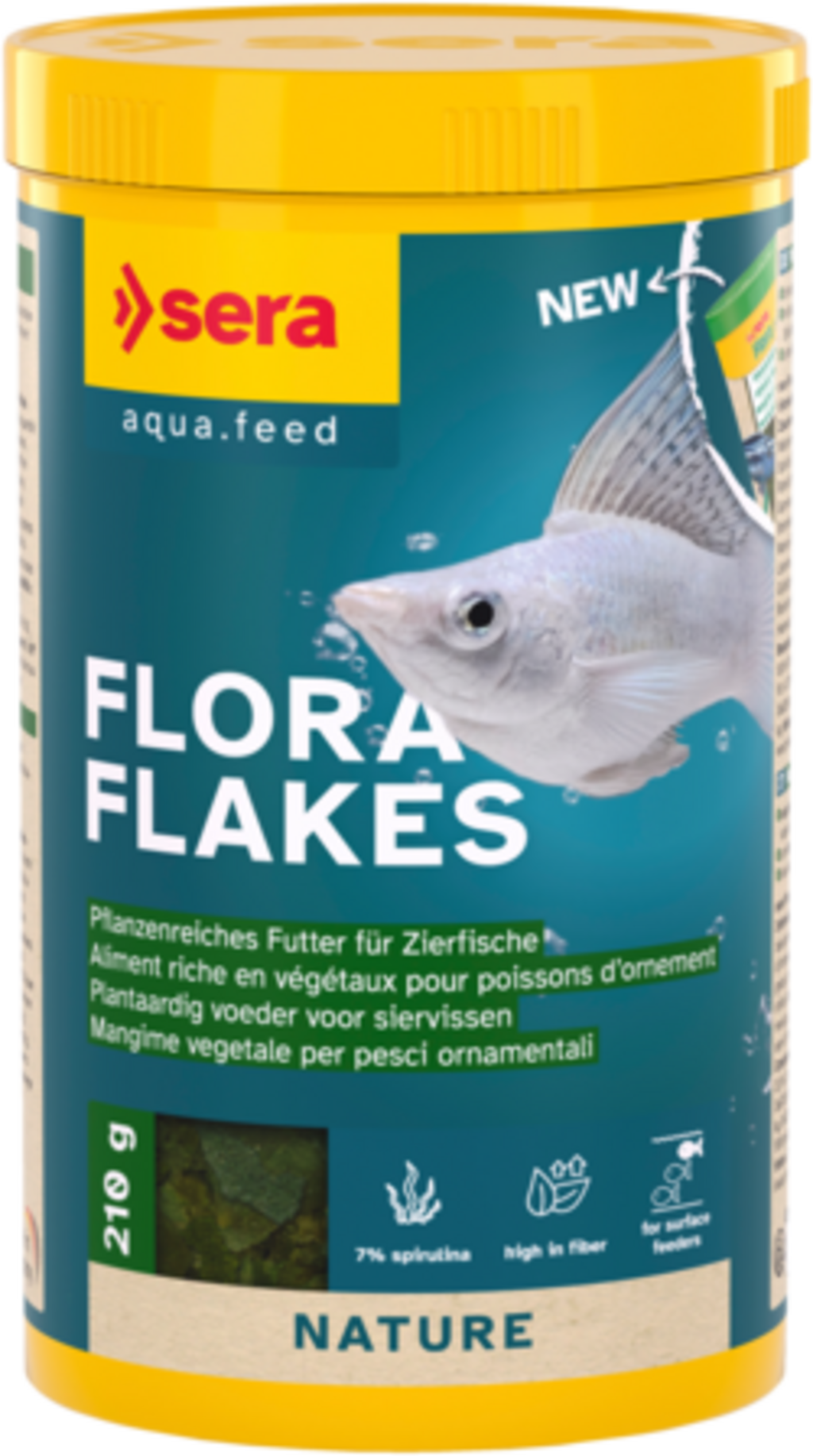 sera Flora Flakes е натурална растителна храна, която осигурява здравословно храносмилане и повишена жизненост благодарение на естествените съставки, богати на фибри, като спирулина с високо съдържание на каротеноиди. Лесно смилаемата рецепта с високо съдържание на растителни протеини е идеална и за отслабени риби, които се възстановяват след заболяване на храносмилателния тракт, например. Стабилните по размер люспи са подходящи за всички декоративни риби, които плуват по повърхността на водата, и не я замъгляват.