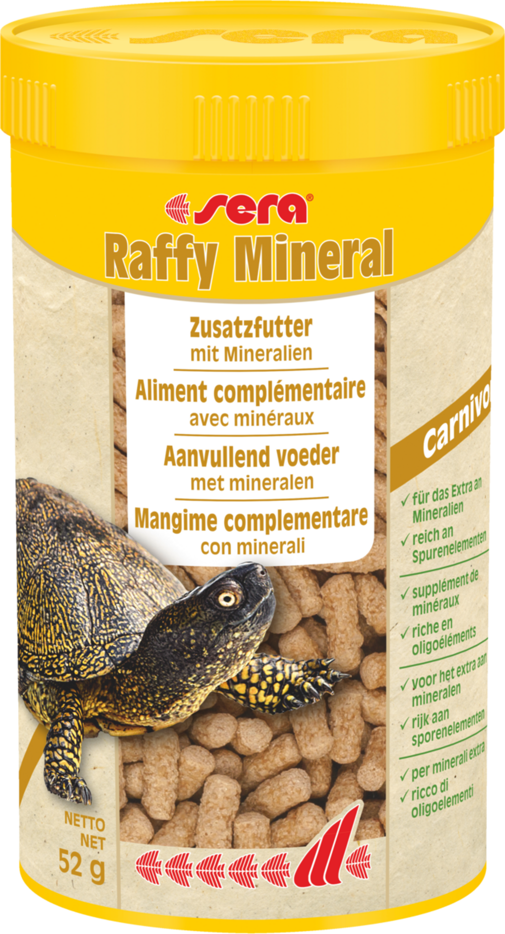 Raffy Mineral от sera е допълнителна храна от внимателно произведени гранули за месоядни влечуги като костенурките.