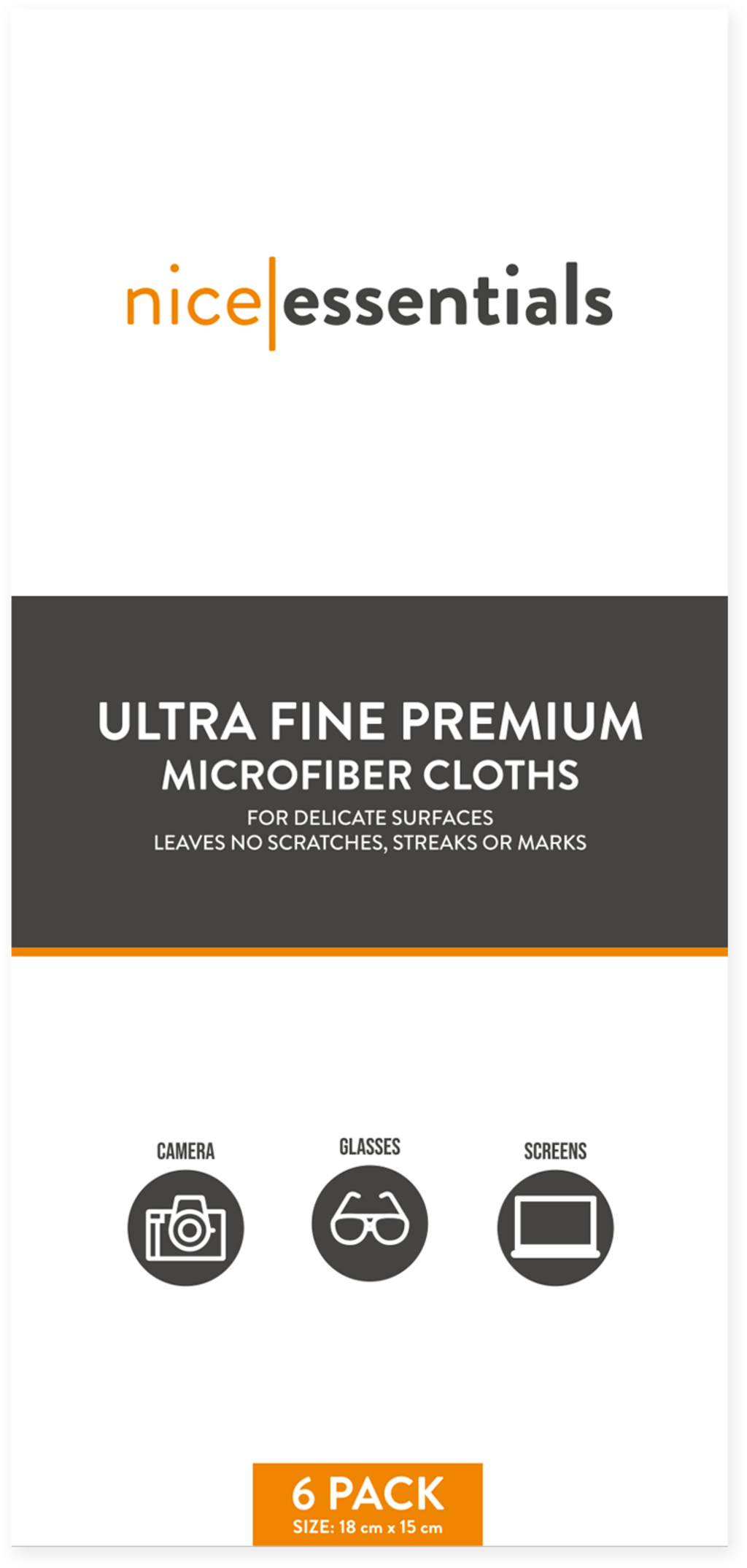 Ултрафините микрофибърни почистващи кърпи от nice essentials са идеални за нежно и старателно почистване на чувствителни повърхности като очила, дисплеи или обективи на камери. Висококачественият, плътно изтъкан микрофибърен материал привлича надеждно прах, замърсявания и мазнини и ефективно премахва досадни отпечатъци от пръсти – без надрасквания или мъхчета.