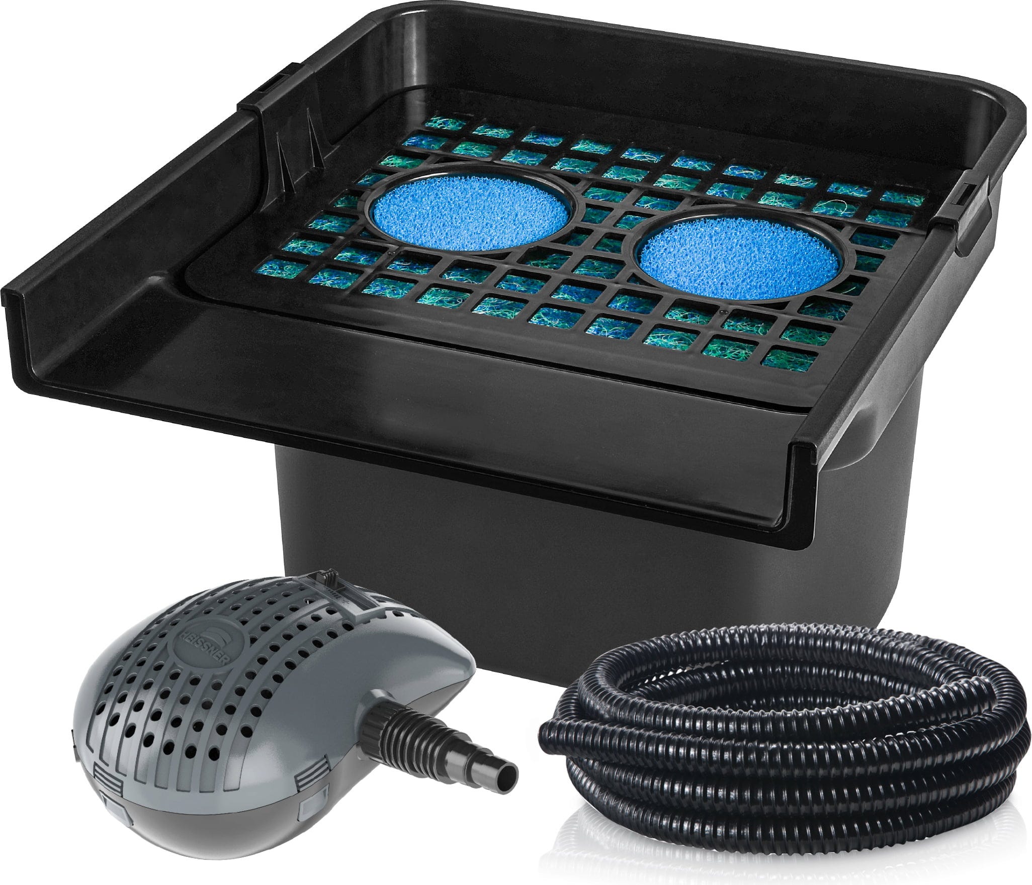 Комплектът HEISSNER филтър с водопад съчетава ефективно механично и биологично почистване на водата в езерото с декоративната функция на 40 cm широк водопад. Постоянният поток на водата обогатява биотопа с жизненоважен кислород, стабилизира качеството на водата и осигурява кристална чистота. Здравият комплект включва мощна помпа с капацитет 3300 l/h и подходящ свързващ маркуч, което позволява лесен монтаж като естествен източник за потоци или декоративни водни елементи.