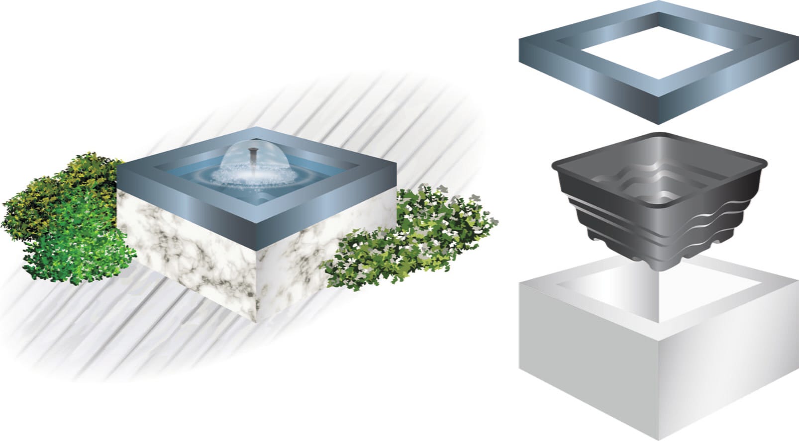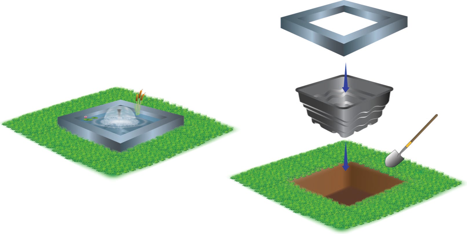 Квадратаната вана HEISSNER позволява неусложнен дизайн на езерце, без рисковете от традиционния монтаж на фолио. Изработено от здрав полиетилен, фолиото се интегрира безпроблемно в градински лехи, естествени каменни елементи или дървени тераси. Интегрираните преливни ръбове позволяват и гъвкаво разширяване на водната повърхност чрез комбиниране на множество фолиа, за да се създаде уникален каскаден пейзаж.