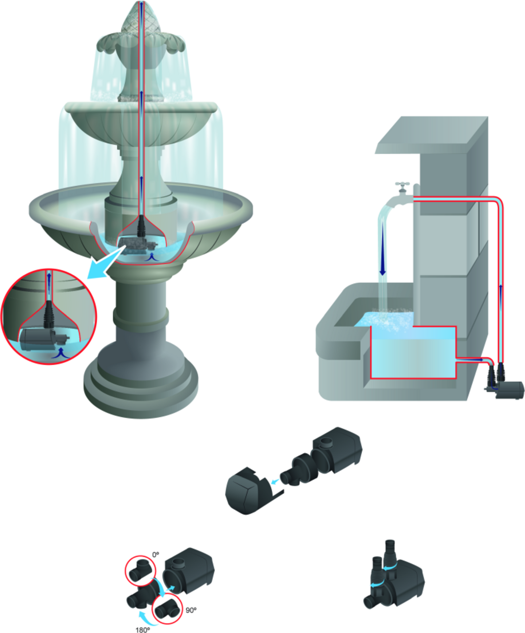 Регулируемата помпа за езеро Aqua Stark Eco на HEISSNER е специално проектирана за използване във водни съоръжения, изворни камъни и компактни терасовидни езера, както на закрито, така и на открито. Благодарение на модерната технология на синхронния двигател ECO устройството работи особено енергийно ефективно и тихо. Плоското засмукване позволява работа дори при ниски нива на водата. Гъвкавата конструкция позволява както потопен, така и сух монтаж, а въртящият се на 90° вход позволява оптимално адаптиране към различните условия на монтаж. Вградената термична защита надеждно предпазва помпата от повреди, причинени от претоварване. Съвместимостта със системите Smart Plug позволява и модерно цифрово управление на всички водни елементи.