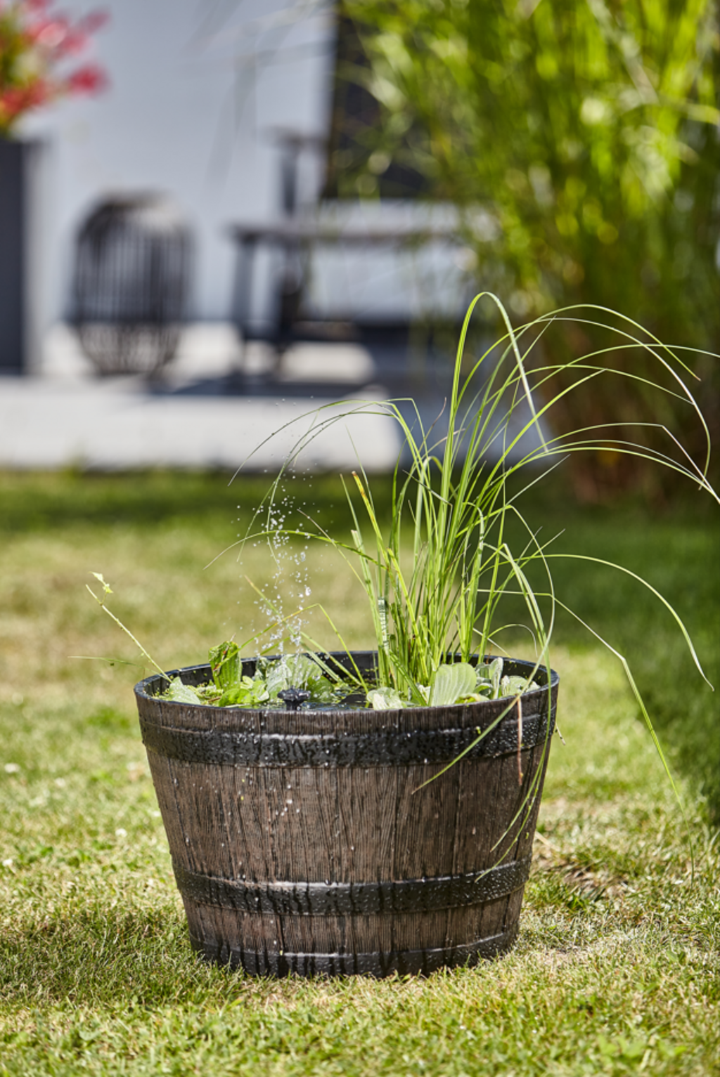 Соларна водна градина Wooden Barrel, 40 x 40 x 27 cm