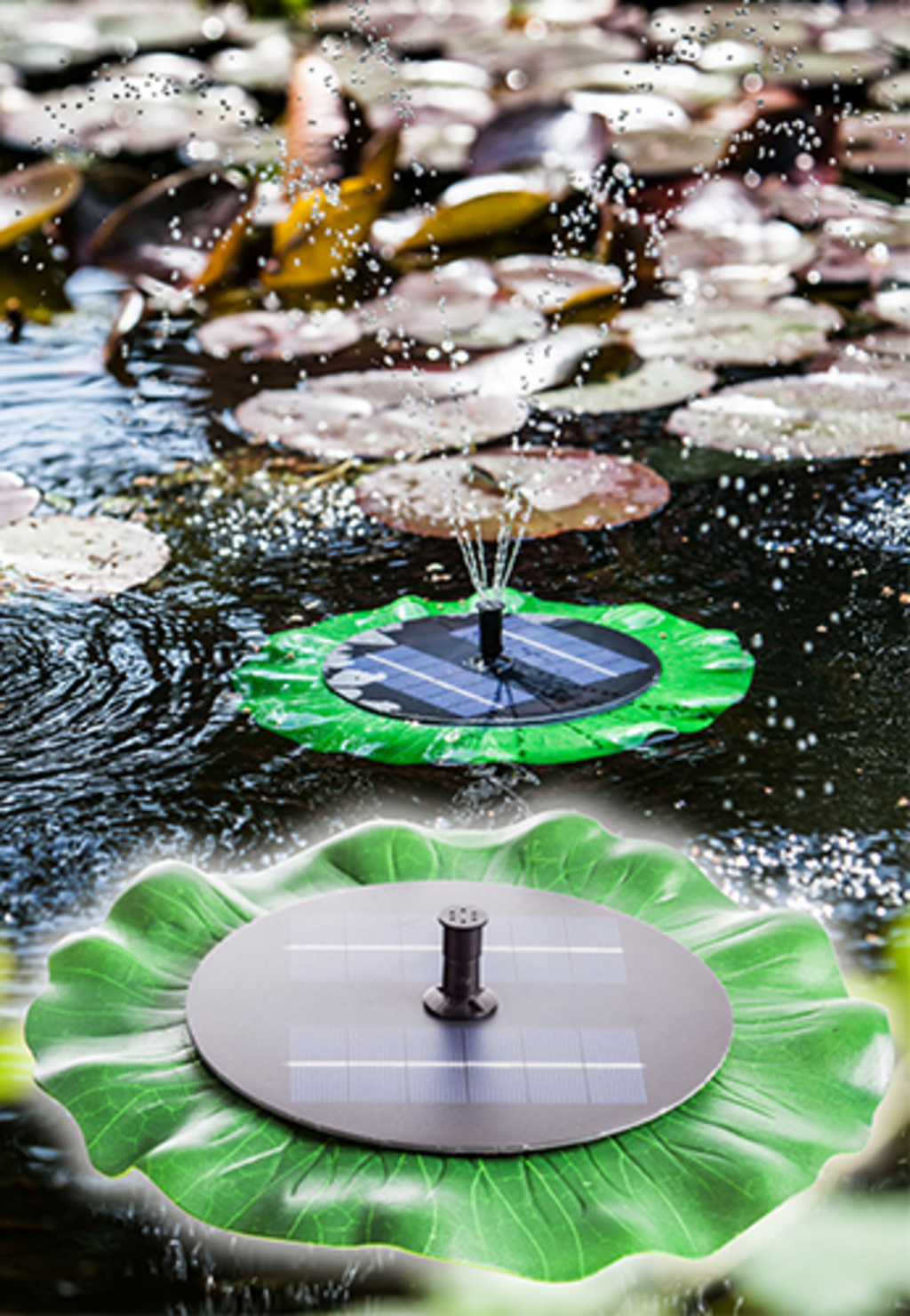 Този плаващ остров със слънчево захранване от HEISSNER с автентичен вид на водна лилия съживява езерата и водните басейни напълно самостоятелно, без външно захранване. Вграденият соларен панел генерира фонтан с височина около 30 см, който подобрява съдържанието на кислород и създава динамични акценти. Благодарение на доставената мрежеста торба за закрепване островът остава стабилен на мястото си, а технологията, която не изисква поддръжка, осигурява екологична експлоатация.