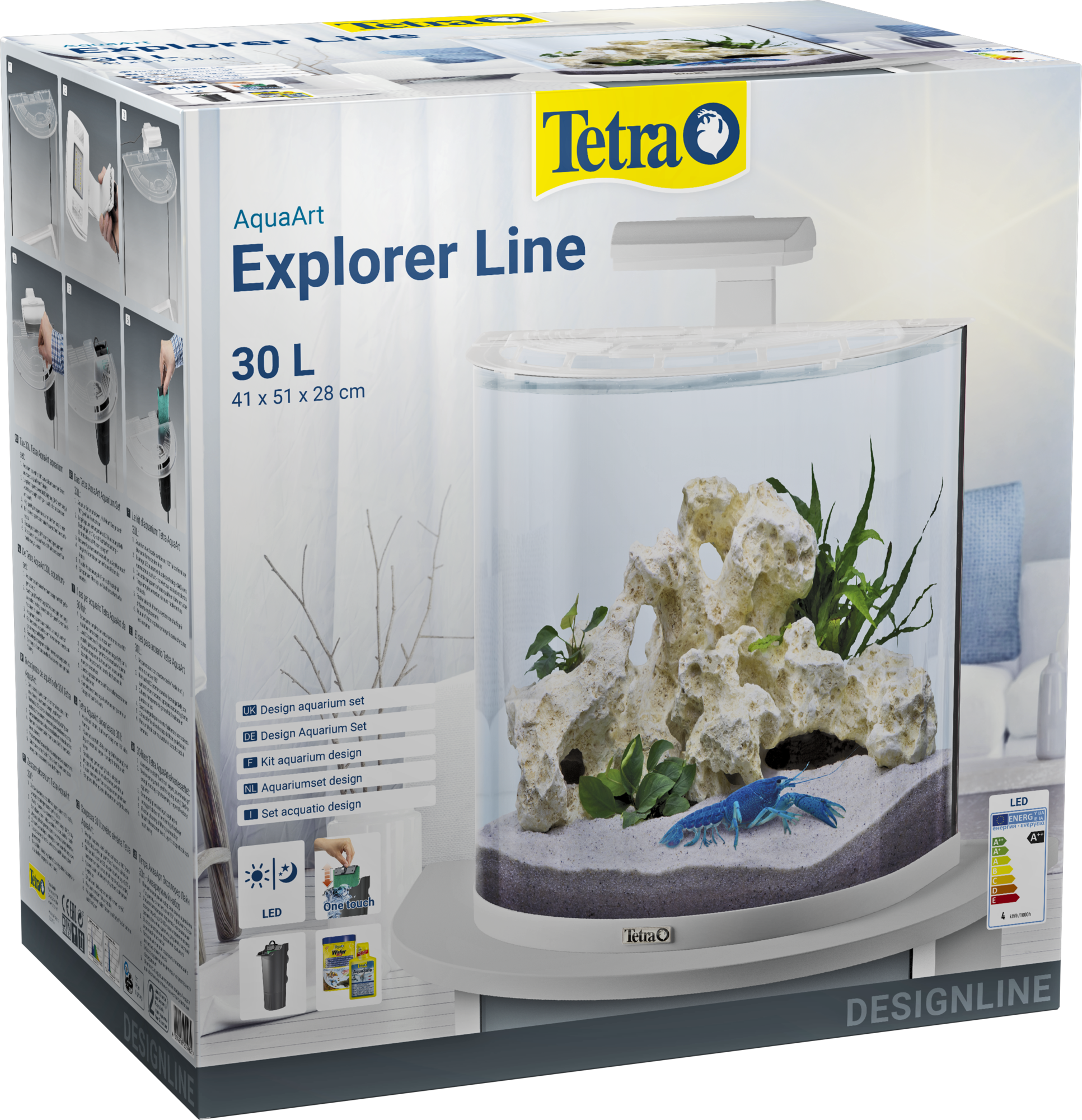 Аквариумният комплект Tetra AquaArt Explorer LED Line 30 L Crayfish е наноаквариум с извито предно стъкло, включващо технология.