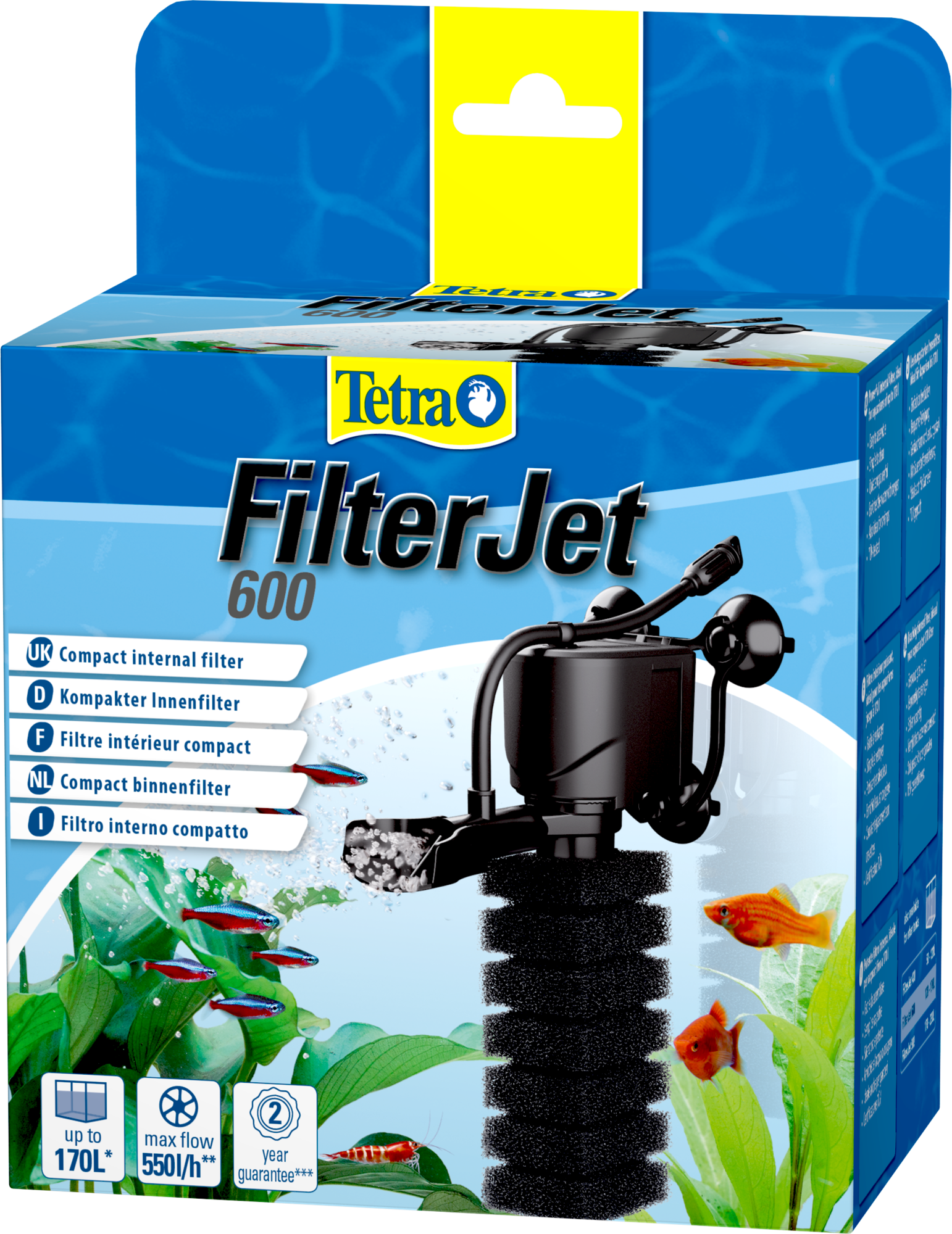 По този начин от водата в аквариума се отстраняват както едрите, така и дребните частици мръсотия. Освен това е възможно да се постигне биологично равновесие, което е необходимо за един непокътнат аквариум. Вътрешният филтър впечатлява с тихата си работа. Благодарение на лесната инсталация, Tetra FilterJet е готов за работа в рамките на няколко секунди. В обхвата на доставката са включени два варианта за монтаж. Частите могат да бъдат прикрепени към стъклото на аквариума с помощта на държач с вендуза или към ръба на аквариума с помощта на скоба.