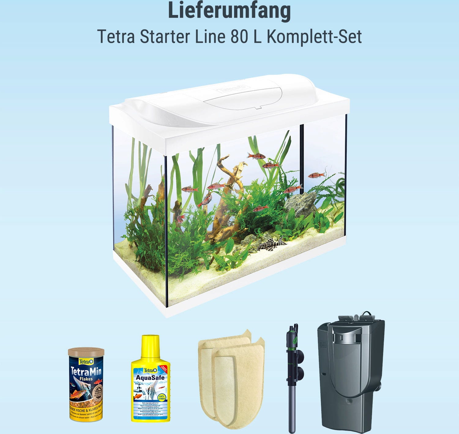 Предстои ви да направите вълнуващата крачка в света на подводните пейзажи и търсите безгрижно начало? Тогава пълният комплект Tetra Starter Line 80 L е точно за вас.