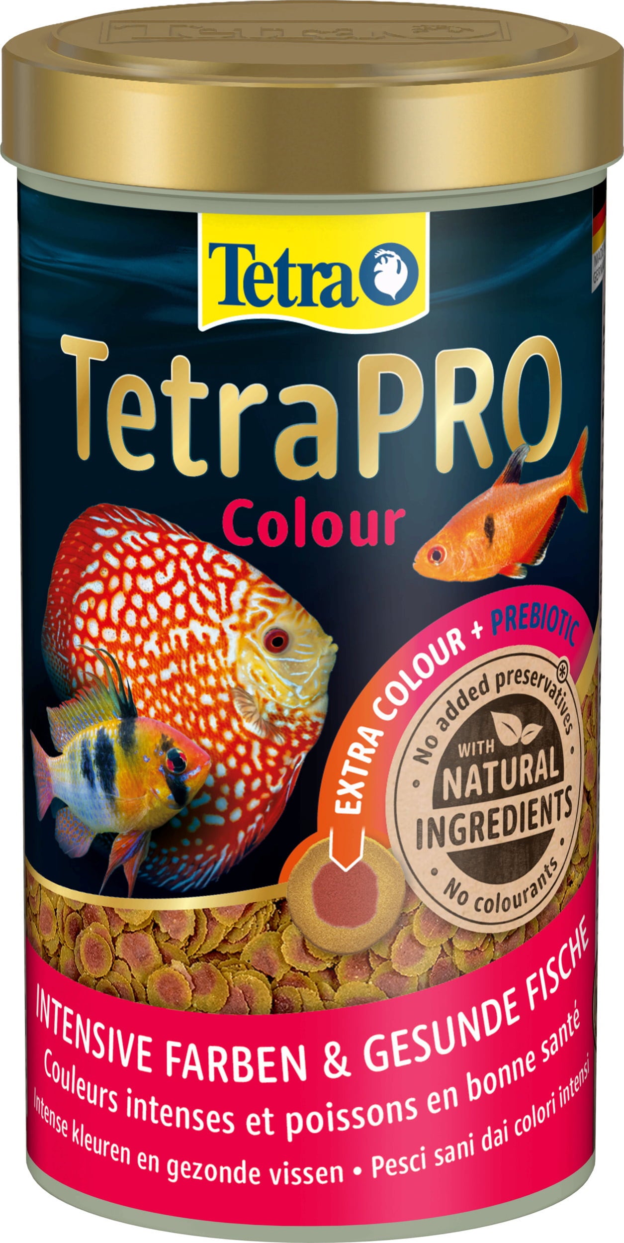 TetraPro Colour е храна под формата на чипс, предназначена за всички декоративни риби в сладководни аквариуми. Фуражът се произвежда чрез щадящ производствен процес при ниска температура.