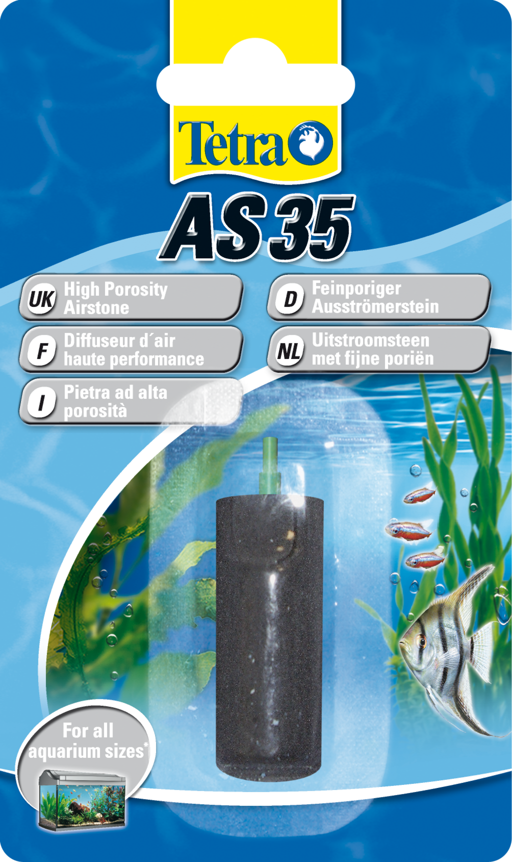 Аераторът е от съществено значение за работата на въздушните гъбични филтри или за увеличаване на съдържанието на кислород чрез увеличаване на движението по повърхността. Този порест камък - за използване с аератора Tetra APS - увеличава кислорода в аквариума. Аксесоарът се свързва към маркуча на аератора AH 50-400 и се поставя в аквариума.